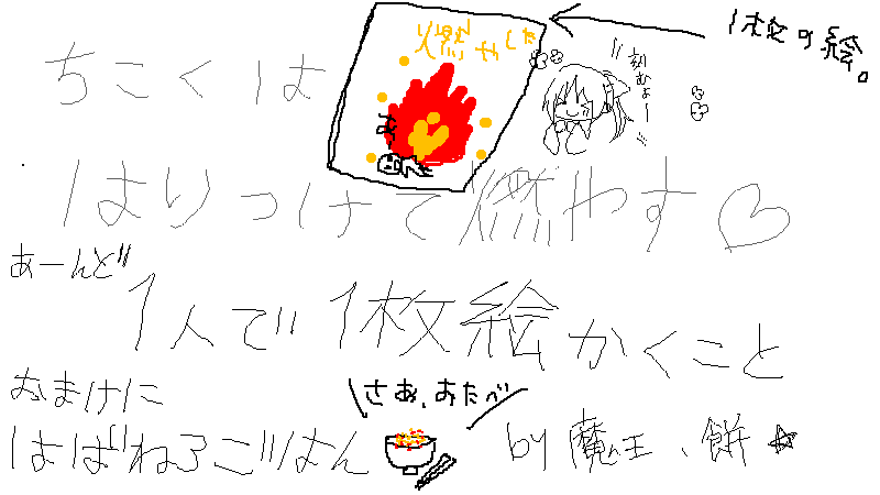 燃やされつつ1枚絵を描いて、はばねろご飯。