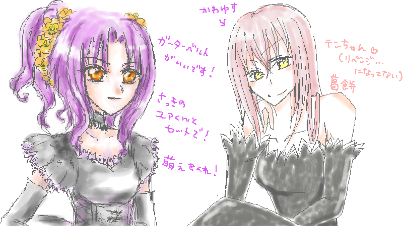 描いていたフィアナに色を塗っていたら、鳳蝶ちゃんも描き始めて、こんなんなっちゃいました☆