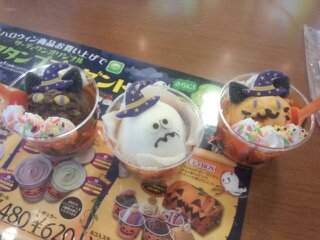 わたしは真ん中のおばけちゃん。中のアイスは魔女のトリックっていうグレープとりんごのフレーバーのアイス。