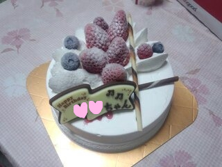 すごい美しい素敵なケーキだったの!個人でされてるお店のケーキなんだけど、わざわざ予約しててくれたの/////生クリームはそんなに甘くなくてさっぱりとしててとっても美味しかった(*´ω`*)
