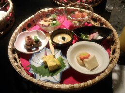 真ん中が茶碗蒸しみたいなの。チーズにプリンみたいなのがかかってるの。これもおいしかったvv