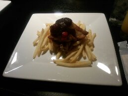 フライドポテトの上に焼いたとりさんが乗っております。そして味噌ベースのソースだったのかな?