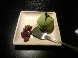 デザートは抹茶アイス。上に突き刺さってるのは手裏剣型のクラッカーです。