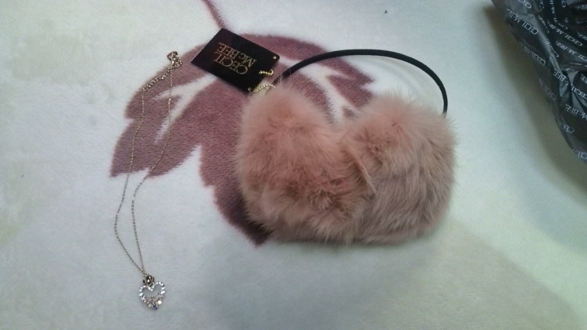 イヤーマフラーとネックレス。最近寒くなって耳が痛くなるから、ほしかったの。