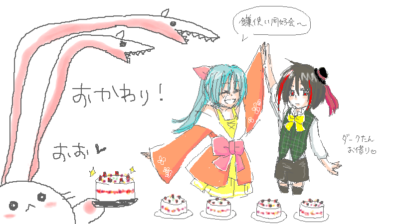 右は鎌使い同好会メンバー。二人しかいないけど。結成記念はまた別に綺麗に描きたいvvそのために身長を伺ったのですが☆