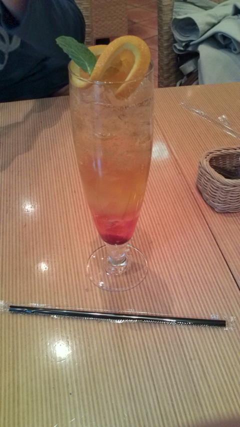 桜とオレンジティーソーダです。上にオレンジが乗っかっております。