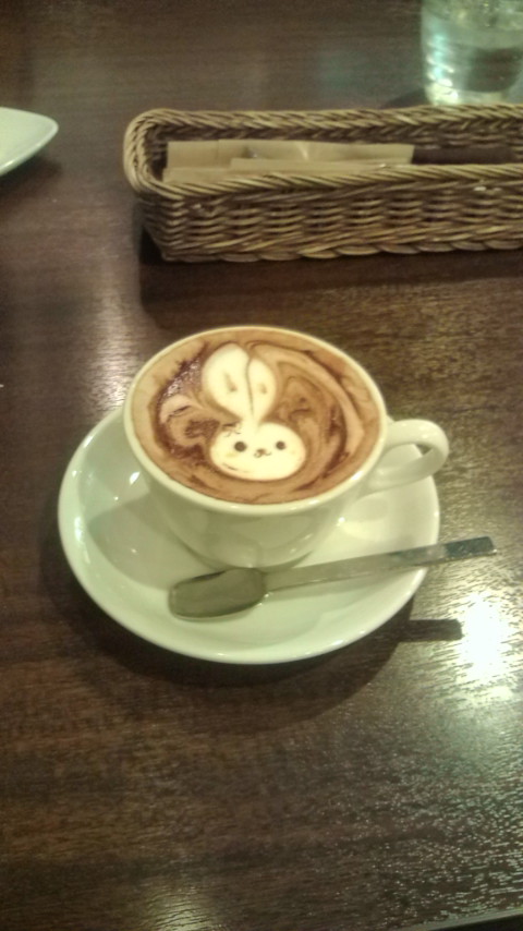 この間に飲んだカフェラテに描いてあったウサギのビフォーアフターの写真が発見されたので飾っておきます。