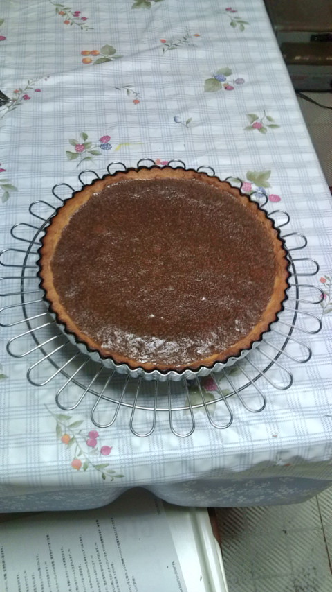 妹は学校の友人にチョコレートタルトを作ると言って、朝から生地を作っていました。